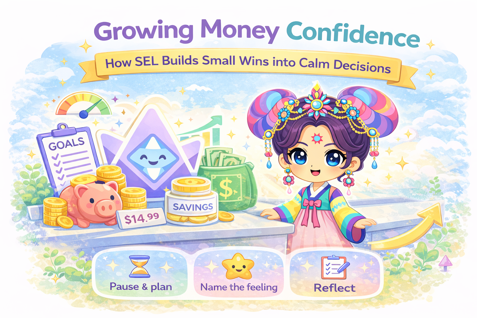 Money confidence for kids isn't about raising mini-accountants. Rather, it's that calm, capable "I've got this" feeling when a money choice shows up. In K–5, confidence grows fastest when we pair simple money skills with social-emotional learning (SEL): naming feelings, practicing self-control, celebrating small wins. This guide shows families and schools how to build money confidence step by step using positive reinforcement, daily teachable moments.